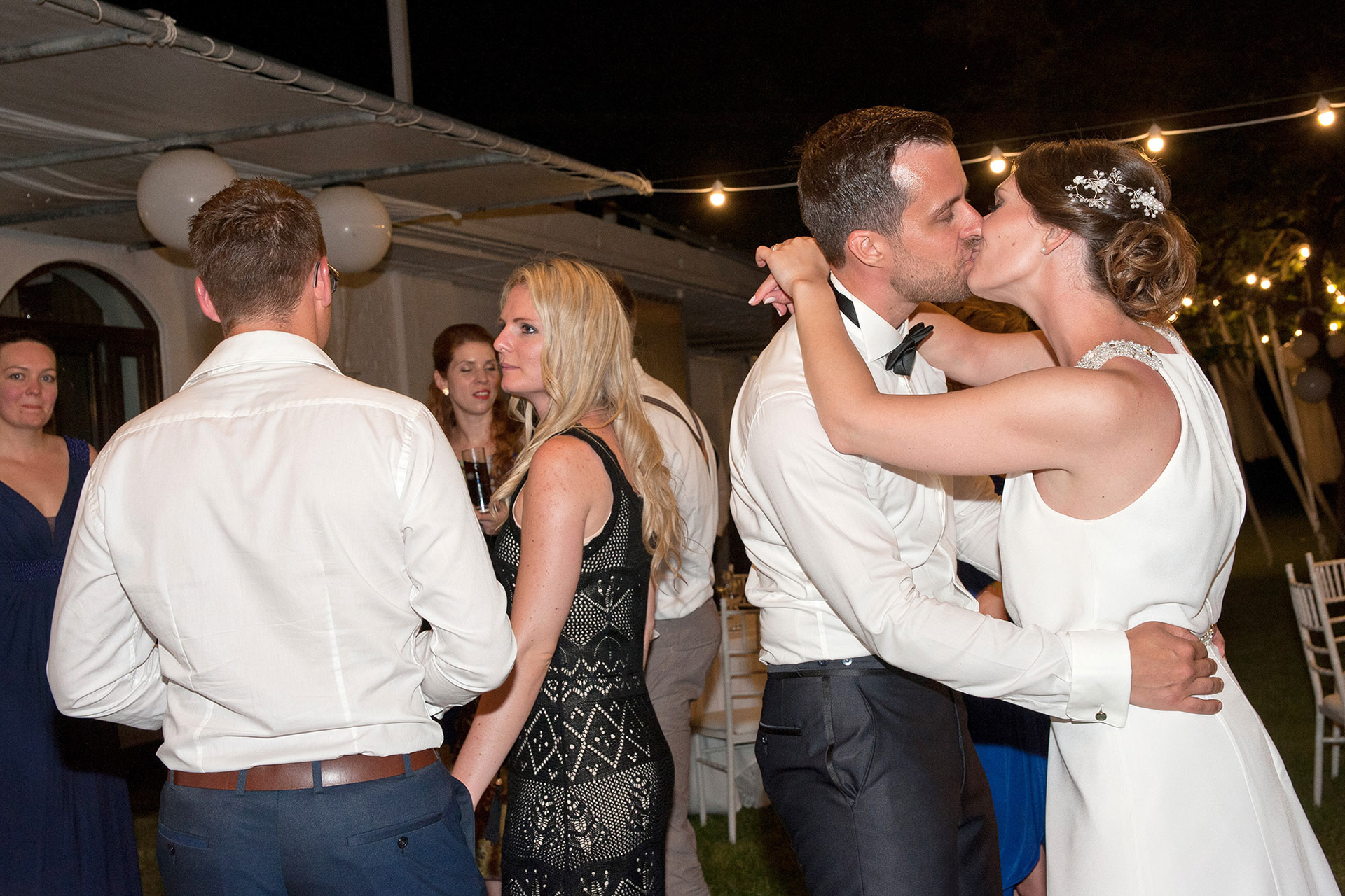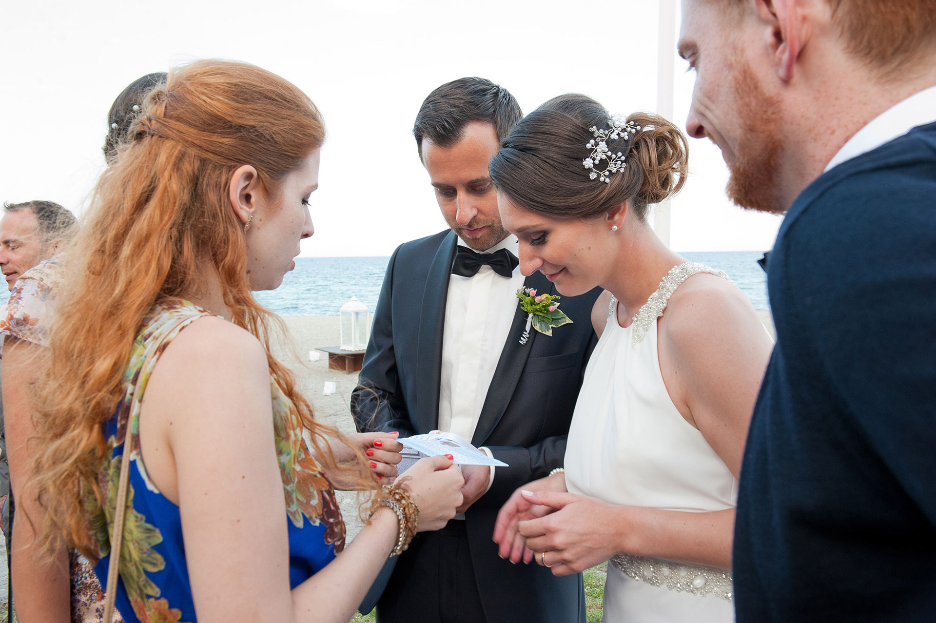 Μετά την τελετή, ακολούθησε δεξίωση στον ίδιο παραθαλάσσιο χώρο, όπου όλοι γιόρτασαν με κέφι, μουσική και χορό μέχρι αργά το βράδυ. Το ηλιοβασίλεμα πάνω από τη θάλασσα έντυσε τη στιγμή με χρυσές αποχρώσεις, κάνοντας το σκηνικό ακόμα πιο μαγικό.